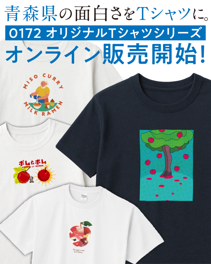 青森県の面白さをTシャツに。系列会社の0172が贈る、オリジナルTシャツシリーズ、店内で販売中!